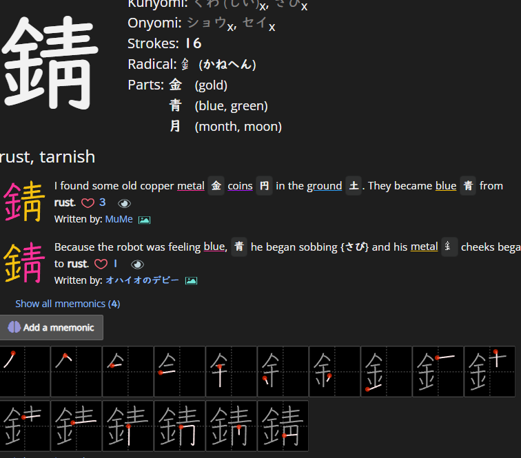 For this kanji: